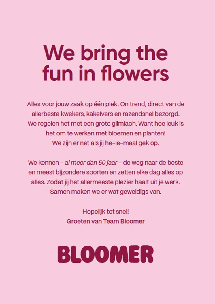 A total rebranding for this online wholeseller for European florists. Brand positioning, values, new brand identity concept, brandstory & webcopy, and overall creative direction. A collaboration with brand manager Miranda van Kester. Identity: Lotte Mulder Ontwerp