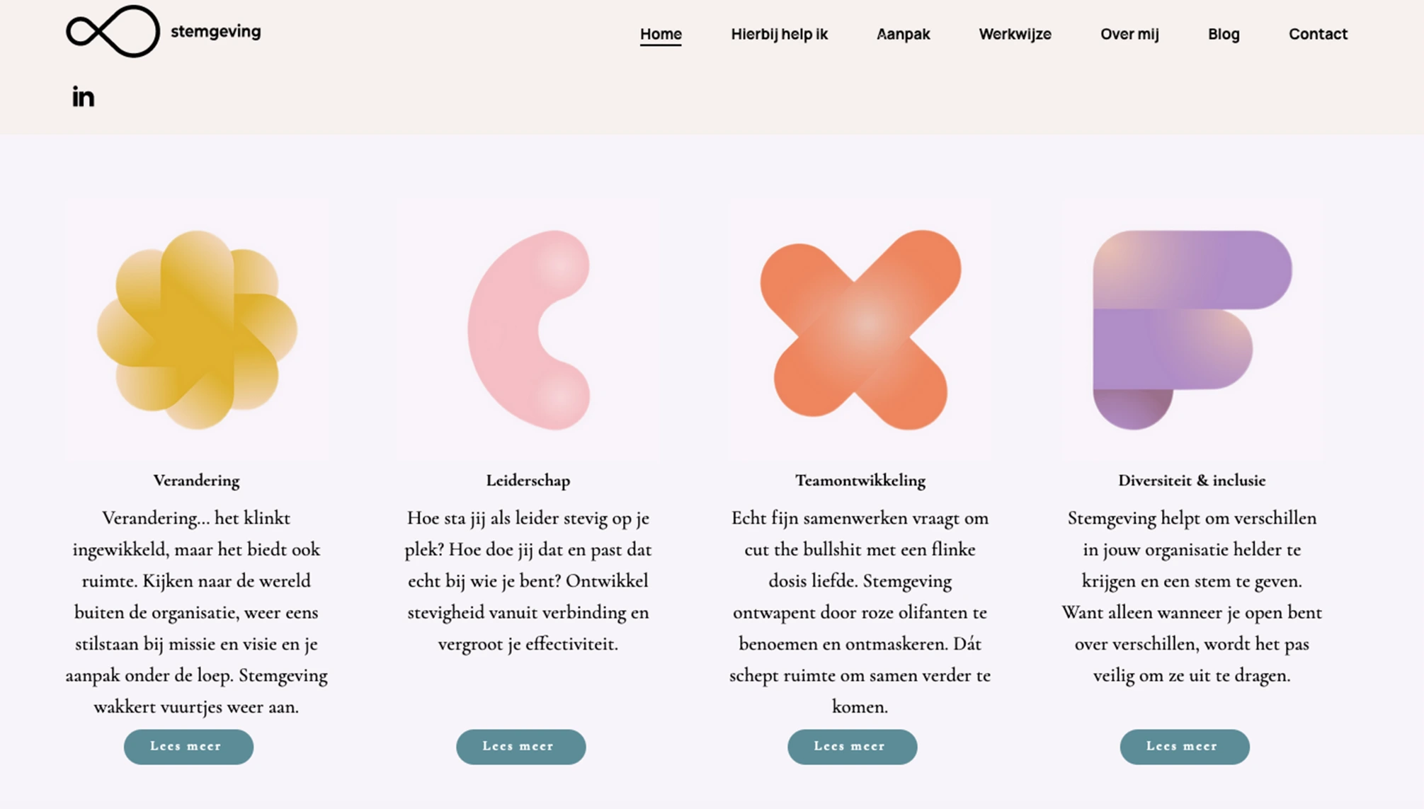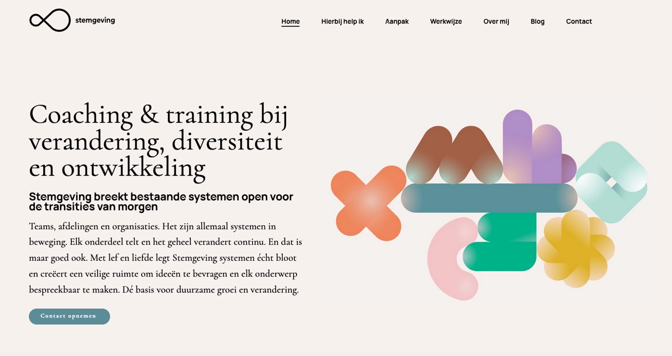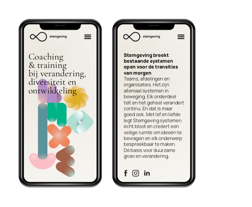 Brandpositioning, visual language concept / system and webcopy for a coach in change and diversity management. Graphic design by Katrien van de Camp